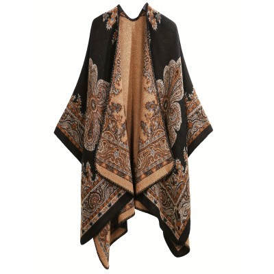 Plus Size - Plus Size - Women'S Elegant French Style Hooded Coat, Loose Fit with Belted Collar, Machine Washable